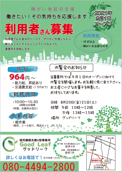 場所:グッドリーフ(大阪市阿倍野区松崎町4-4-18-1F)